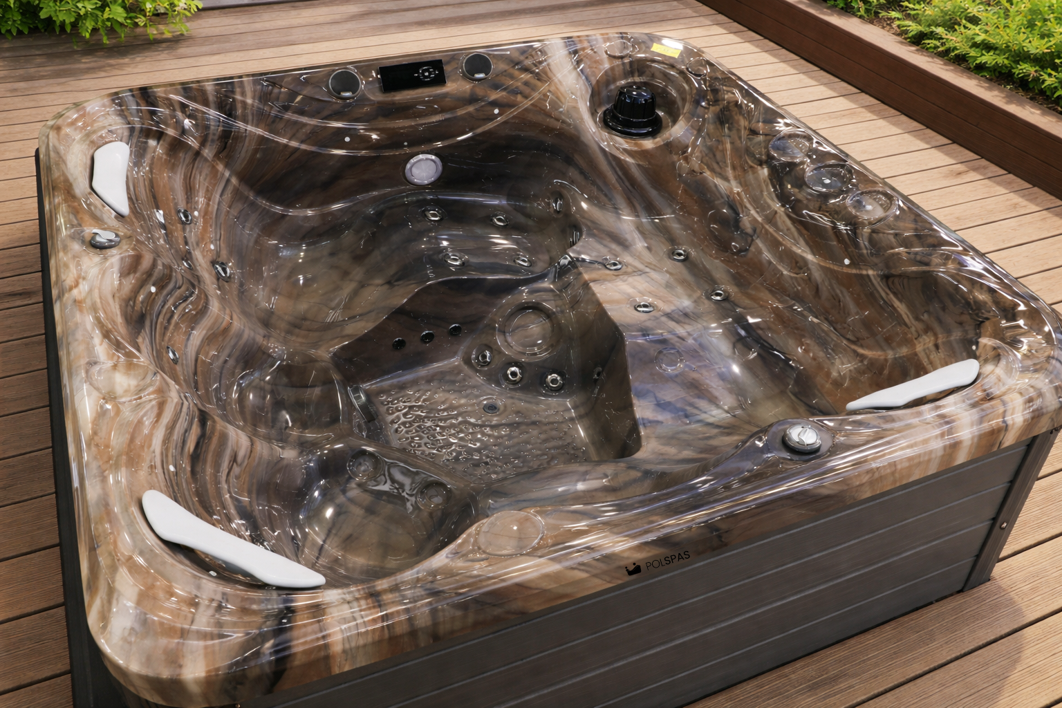 Select bewteen four elegant colours for your hot tub shell. The elegance of Silver marble, the minimalism of the Pearlscent, the class of the Midnight Opal or the depth of the Ocean Wave.